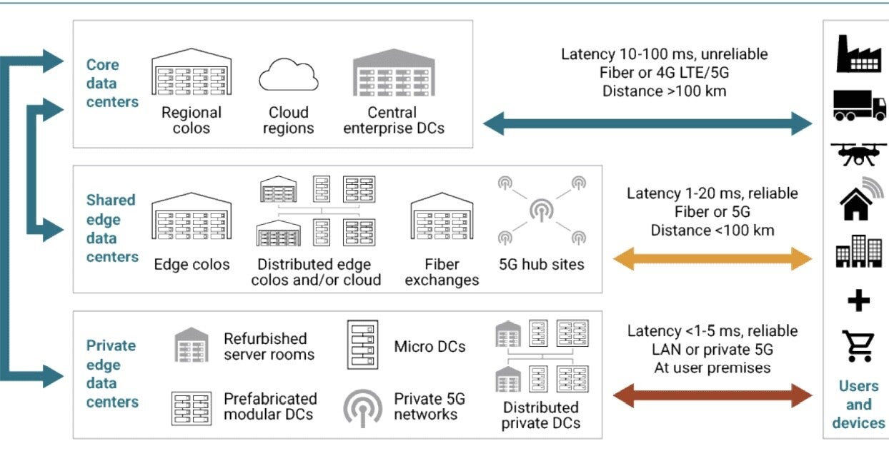 - Edge Data Centers: Smaller, decentralized, and located near users to reduce latency.